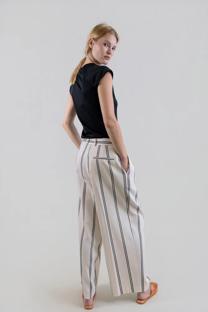 DOUBLE PINSTRIPE HIGH-WAIST WIDE-LEG PANTS