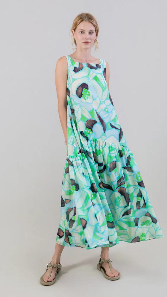 BOTANIC SOFT FLOW DRESS WITH ASYMMETRICAL OVERLAY